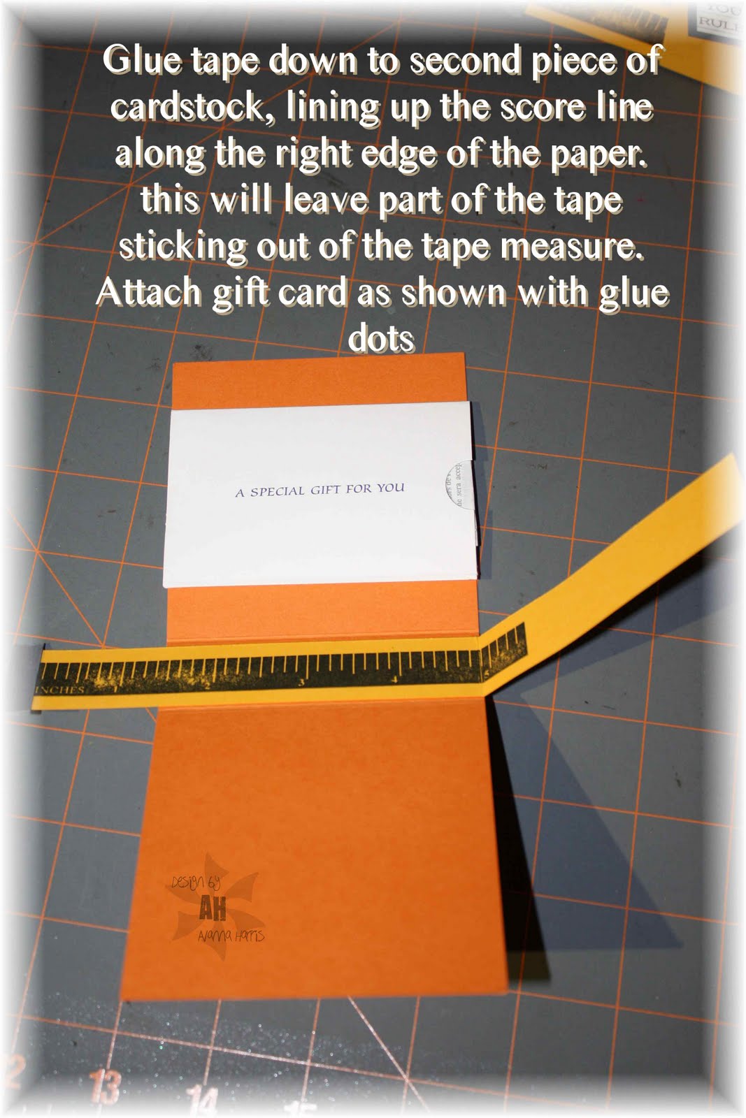 You can decorate the tape measure as you wish. I used stamps from A muse's School Time clear set - perfect for this project as it includes the ruler and the sentiment "You Rule". I added a bit of grey cs at the end of my tape measure so it looks like a real one.